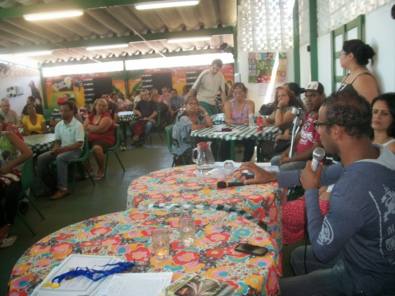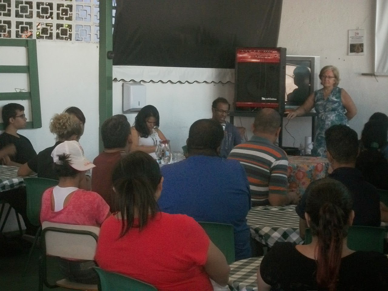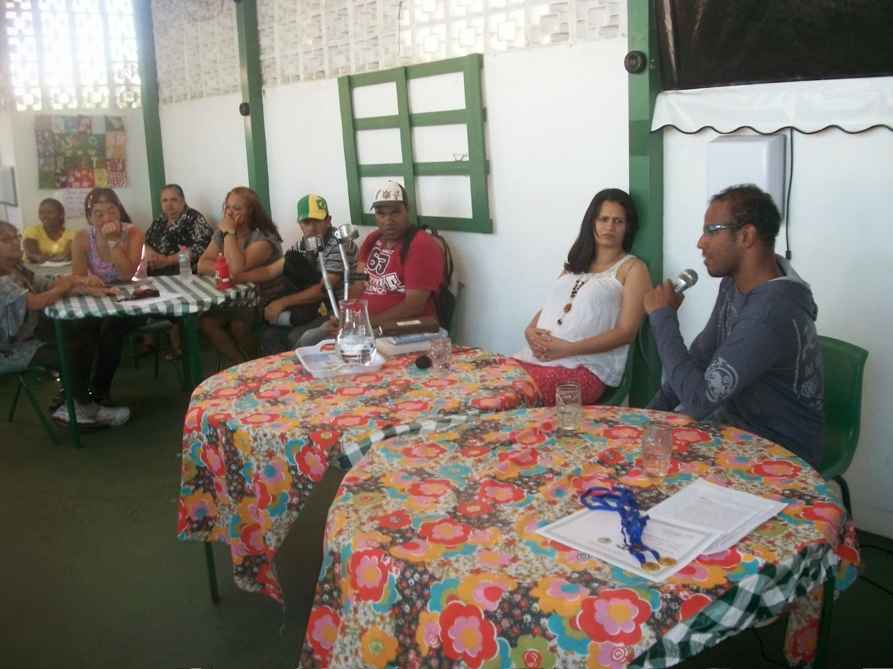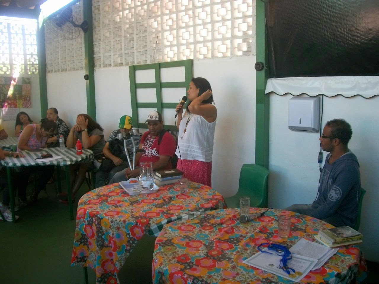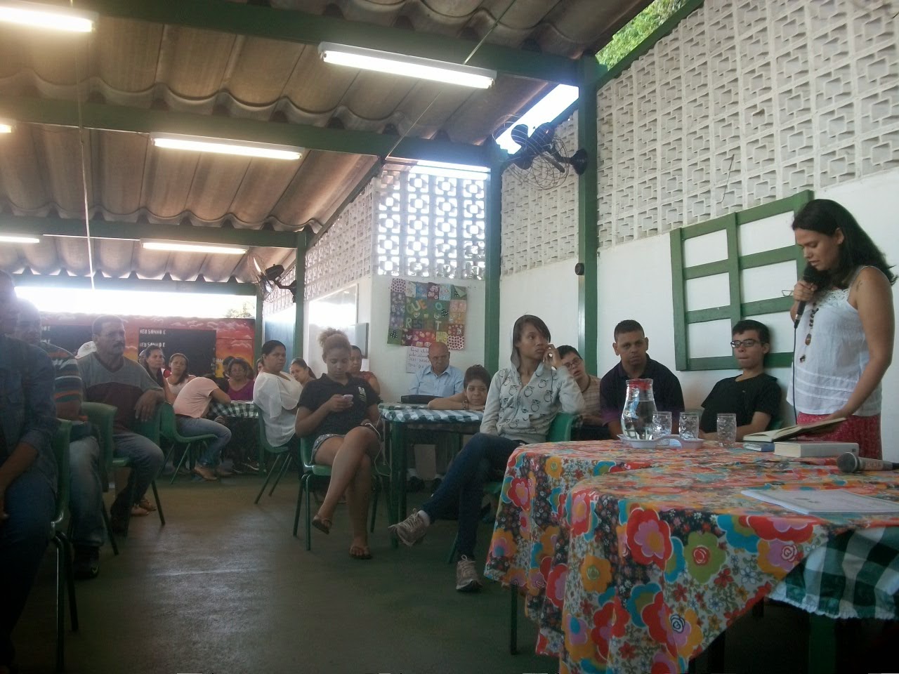 A escola estava finalizando um concurso literário realizado com os próprios alunos, que ganharam certificados e medalhas. Foram dois bate-papos na parte da manhã: um às 8h e o outro às 10h30.