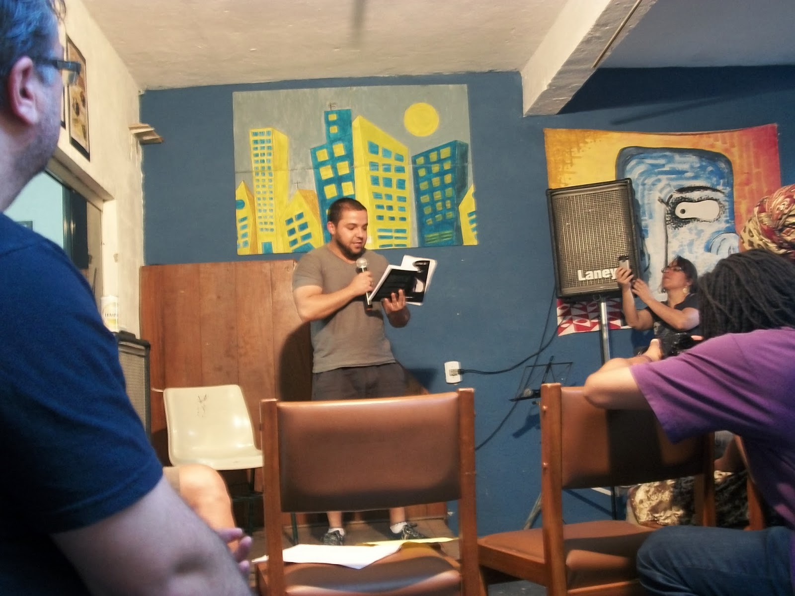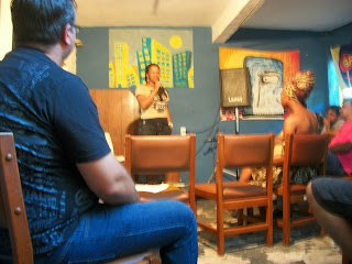 Lindo de ver que a união de artistas (escritores, músicos, entre outros) pode gerar árvores bem frutíferas. Caso do projeto Casa Amarela em São Miguel Paulista. Ô turma porreta essa, que tem entre seus membros Escobar Franelas e Akira Yamasaki. Ontem, o sarau que rolou lá foi daqueles que a gente nunca quer que acabe. E quando acaba a gente nunca quer ir embora… abraça um aqui, toca na mão do outro ali, troca telefone… e quando a gente já tá na porta, sendo empurrado por aquele que veio com você, dá uma nostalgia… Mas aí é só lembrar que no mês que vem tem mais. E a alegria volta novamente.