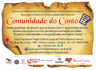 Retratar a periferia em questões que estão além da violência e da carência é um desafio que os escritores da Associação Cultural Literatura no Brasil (ACLB) terão este mês com o Comunidade do Conto. O projeto que nesta edição abordará o tema “Periferias Urbanas”, com a mediação da antropóloga Érica Peçanha do Nascimento, será realizado na quarta-feira (1o de junho), a partir das 19 horas, na Sala de Teatro da companhia “Atores InSanos”, abrigada na Faculdade Piaget (Av. Mogi das Cruzes, 1.001, Jardim Imperador, em Suzano). A entrada é gratuita e aberta a todos os interessados.