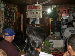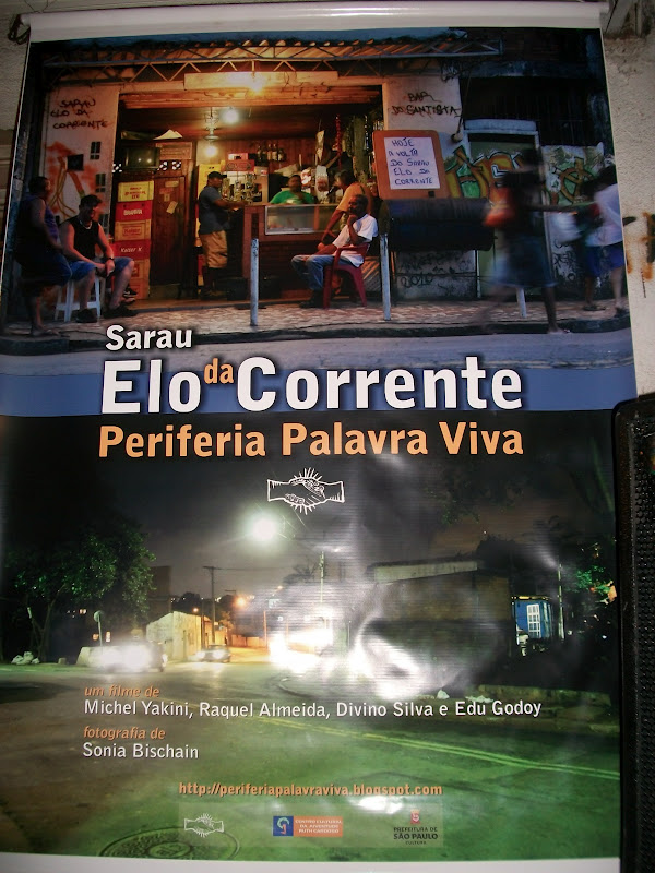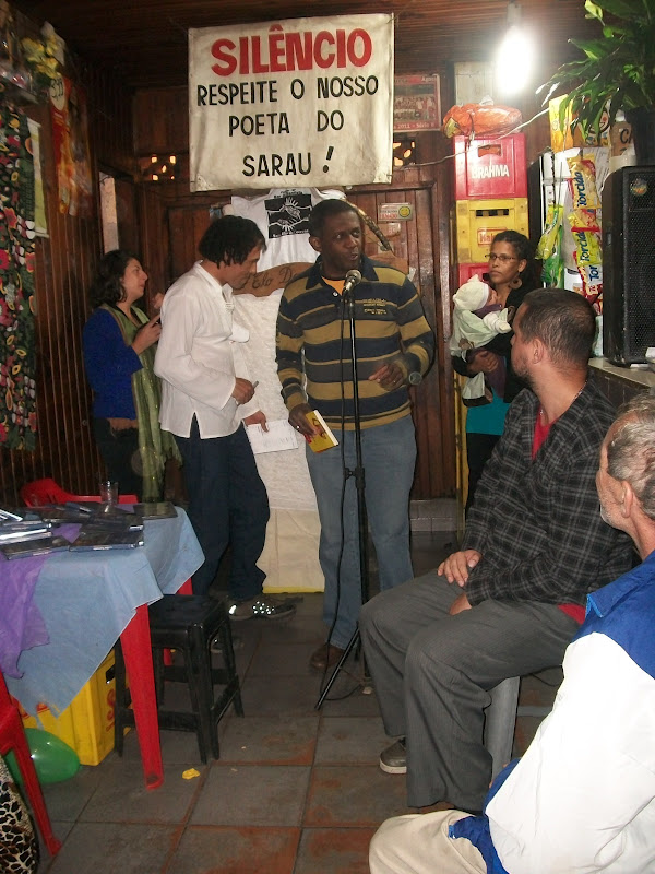 Ontem eu, a Landy, a Francine e o Leilson fomos até o Sarau Elo da Corrente, onde fiz mais um lançamento do meu novo livro de contos “Manteiga de Cacau”. Saímos de Suzano às 18h40, com o meu possante Prêmio 1.6 que já faz parte da história da Literatura Pauslita. Passamos pela rodovia Ayrton Senna, Marginal Tietê e um pedaço da Pinheiros. Depois rodovia Anhanguera e em 20 minutos estávamos no Bar do Santista, onde há 5 anos acontece o sarau. Chegamos às 19h45.
