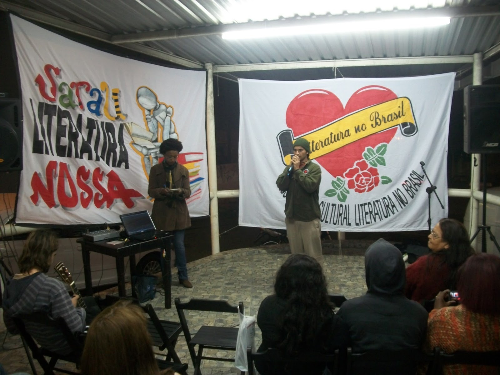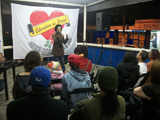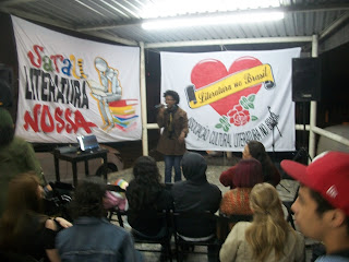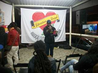 E a nossa agitação cultural não para. O Sarau LiteraturaNossa também não! Ontem rolou mais uma edição deste sarau. Desta vez na Casa do Norte Santo Expedito II, no Jd. Revista. É que estamos circulando por alguns espaços no bairro, para ir direto naquelas pessoas que, por iniciativa pessoal, nunca iriam num sarau. Deste modo chegamos de mansinho e pegamos pelos ouvidos esses cidadãos que estão ali com a família, tomando um pingado ou uma cerveja, comendo uma comida típica e sentindo uma nostalgia, ou simplesmente batendo um papo. Aí é hora de jogar poesia (literatura) na vida deles, não que não tenham, mas é que a nossa vida tá mais cheia de literaDura do que qualquer outra coisa. E viva a poesia! E viva os agitadores culturais! E viva os apaixonados pela periferia!