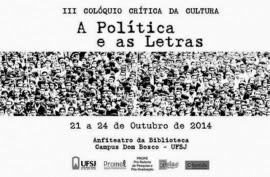Vou ali em Minas Gerais, dar umas palestras no III Colóquio Crítica da Cultura.