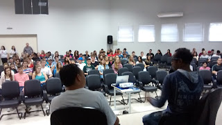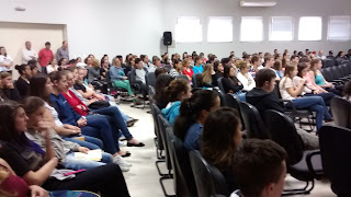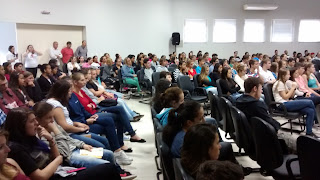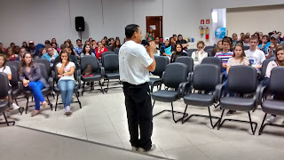Na palestra de manhã, 200 alunos. Na palestra da tarde, 50.