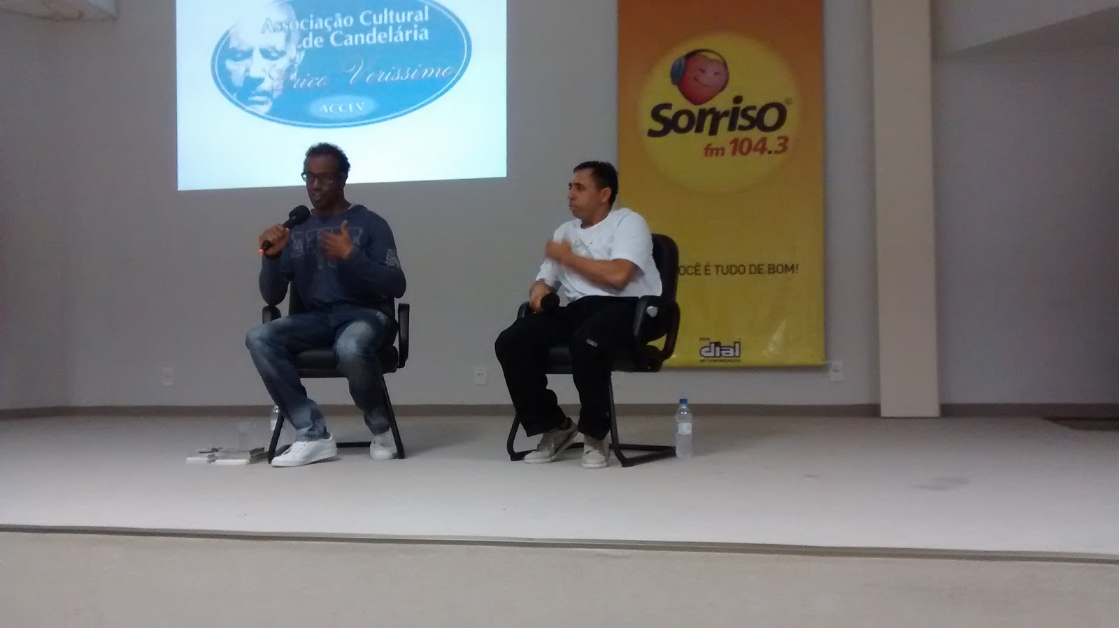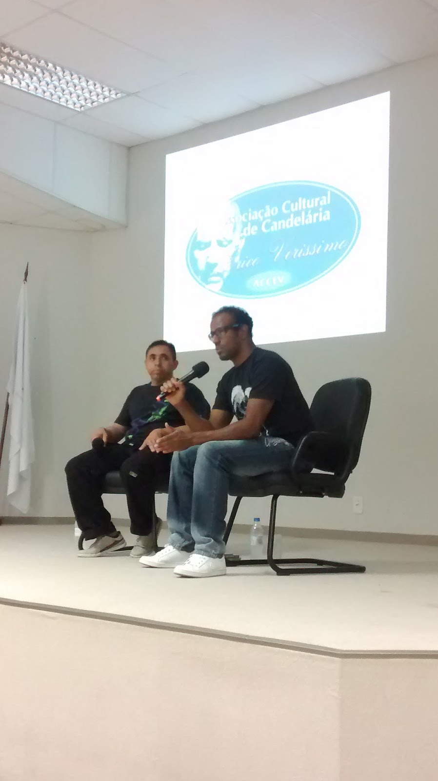 Francis Gomes e eu, dois escultores e trabalhadores da palavra, cumprimos mais uma missão do projeto Literatura das Bordas – Palestra Espetáculo.
