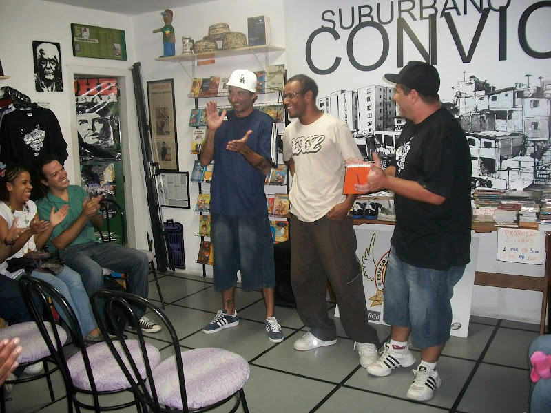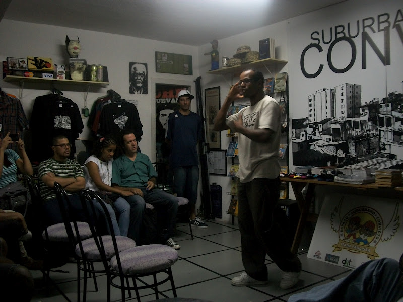 E nós da Associação Cultural Literatura no Brasil lançamos ontem na Loja Suburbano Convicto, no Bexiga, as nossas publicações, o livro “Comunidade do Conto” e os CD’s de Literatura I e II. O sarau foi muito bom e nosso bonde literário compareceu e representou. Veja abaixo algumas imagens dessa noite memorável.
