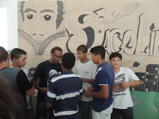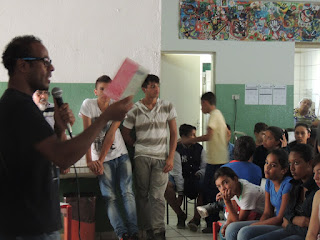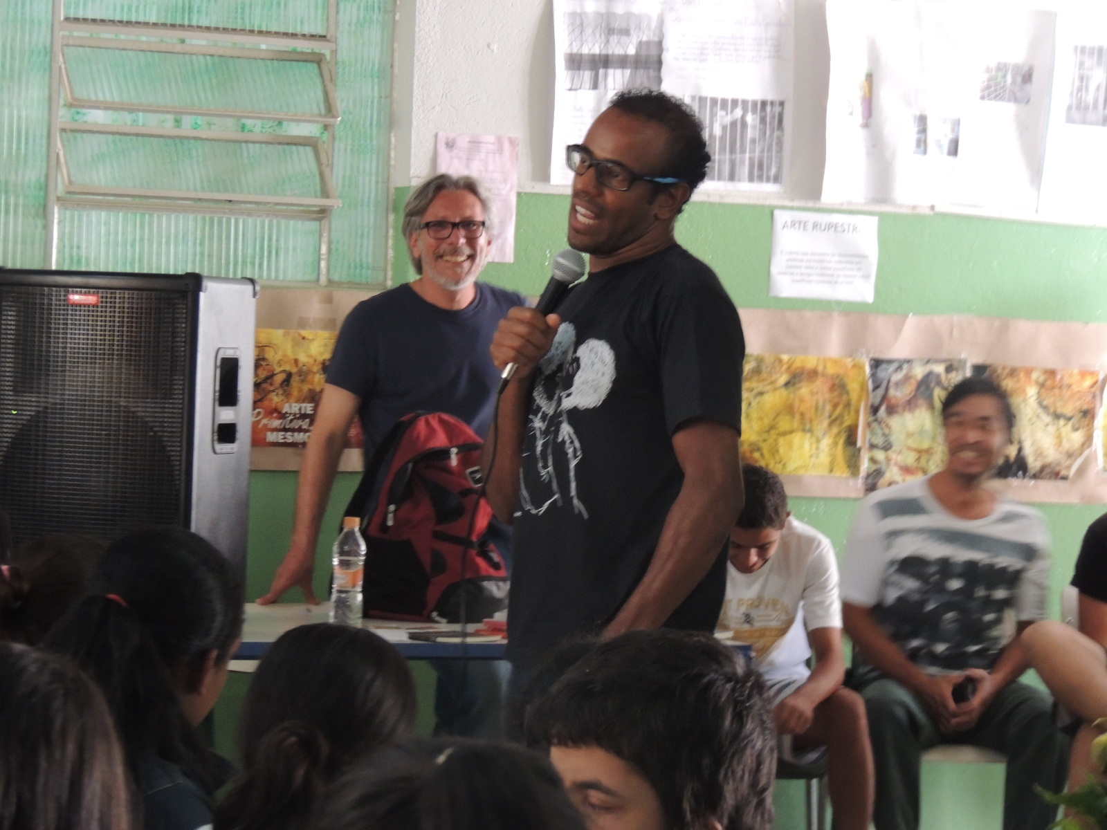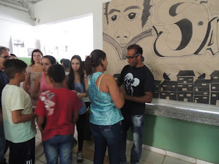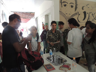 A palestra aconteceu no pátio, para abrigar e dar conta dos mais de 200 alunos. Falei de livros, literatura, leitura e aproveitei para tratar também sobre oligarquia política, mídia e golpe. E disse que o que eu estava falando ali não eram afirmações, eram provocações.