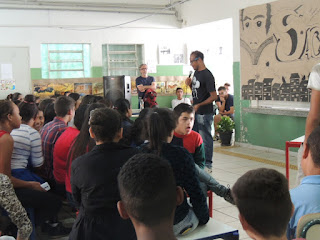 A palestra desta semana (quarta-feira) foi na E.E. Clélia de Barros Leite da Silva, em Nazaré Paulista – SP. Fui à convite do prof. e amigo Mário Sérgio Thomaz, que mora e também dá aula na cidade de Atibaia, onde fizemos um trabalho exitoso ano passado.