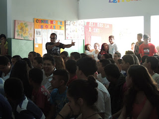 Obrigado Mário, pelo convite, obrigado Valéria, pelas fotos e obrigado professores, alunos e demais funcionários pela manhã de quarta-feira. Estou bem contente com tudo. Vejam nas fotos que essa alegria não é só minha.