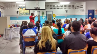 E ontem foi a vez da turma do EJA da escola municipal “José Maurício de Oliveira”, em Guarulhos, de receber a minha palestra onde eu incentivo a leitura e falo de literatura de uma forma bem próxima a eles. Não vou falar tudo de novo aqui, pois vão perguntar: “mas em toda escola é sempre o mesmo resultado?”. E teria que ser diferente? Com o amor e a paciência que eu dedico ao meu trabalho de militante das letras, é claro que o resultado sempre é positivo: A galera começa a ler imediatamente.