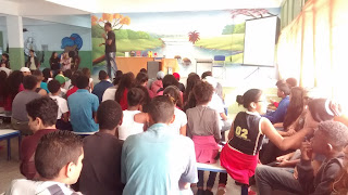Ontem, quinta-feira, passei o dia todo na escola Ruy de Mello Junqueira, na Cidade Tiradentes, Zona Leste de SP. Fiz palestra para as turmas da manhã, da tarde e da noite. O cansaço fisíco é inevitável, mas posso afirmar que a cada palestra dessa, minhas energias ficam recarregadas. É que ver seu trabalho dando resultado, incentivando cada vez mais pessoas à leitura, dá uma sensação de utilidade tamanha.