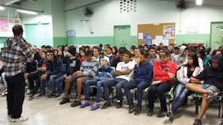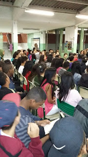Na semana passada fiz esse trabalho na E.E. José Papaiz, Jd. Leblon em Suzano – SP à convite da Coordenadora pedagógica Ana Caló. Foram duas palestras e um sarau. Já no fim da primeira palestra a sala de leitura da escola encheu de interessados em emprestar livros. Aí uma funcionária da escola me perguntou: “Como você conseguiu isso?” e eu respondi: “Só provei pra eles que eles gostam de ler. Todo mundo gosta, só que alguns não sabem ainda”.
