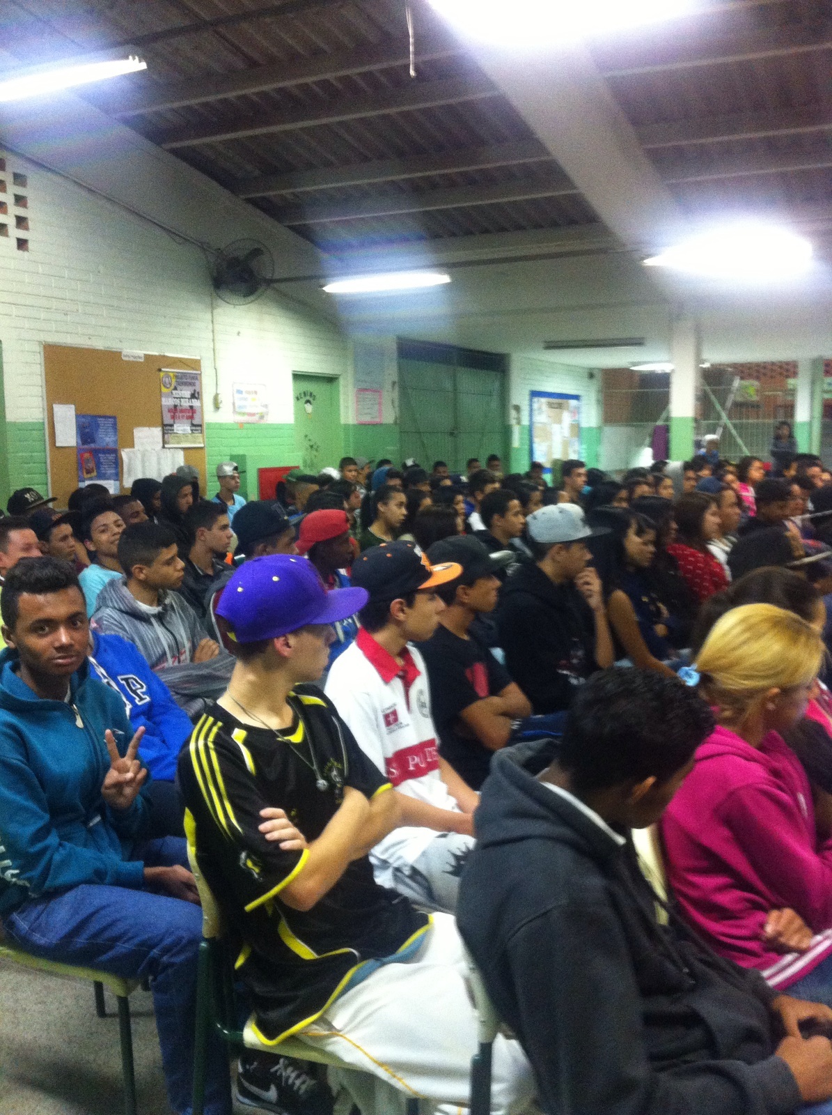 Desde 2008 que venho fazendo palestras nas escolas. Uma vez um amigo escritor disse pra mim: “Você é louco! Falar num lugar onde ninguém te leu e nunca leu nada e ficam numa algazarra… Sem contar os professores que não respeitam o nosso trabalho e vêem na palestra um motivo pra ficar na sala dos professores corrigindo prova. Cê tá com disposição, isso sim”.