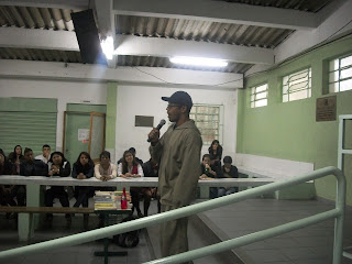 E ontem, de noite, foi a vez da Escola Davi Jorge Curi. É a segunda semana seguida. Costumo passar uma vez só em cada escola, mas esta unidade tem um projeto de leitura muito bacana. Então fui na semana passada falar com os alunos do período da tarde, e ontem, terça-feira foi a vez da galera do noturno.