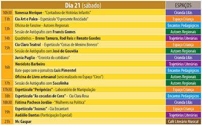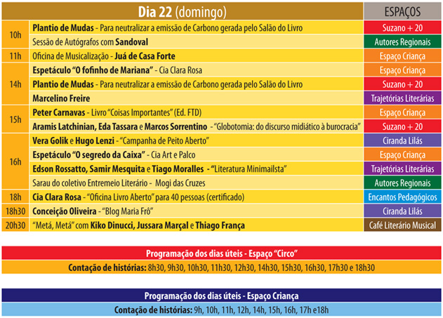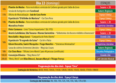 Pessoal, para quem ainda não teve tempo de vir no Salão do Livro, e pensa em visitá-lo entre amanhã e domingo, segue a programação da reta final, com destaque para: