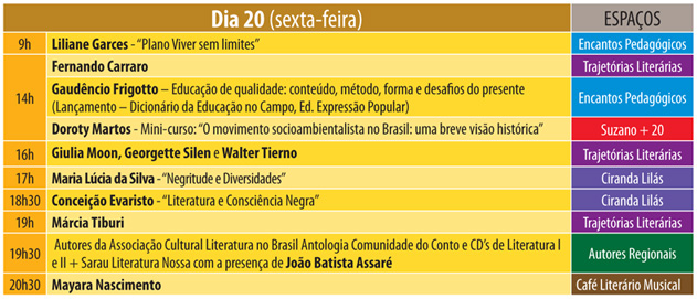 Sarau LiteraturaNossa da Associação Cultural Literatura no Brasil, com a presença de João Batista Assaré, Márcia Tiburi, Heródoto Barbeiro, Audálio Dantas, Gaspar (Z’África Brasil), Marcelino Freire e Sarau dos Mesquiteiros, esse foi fechado depois da programação impressa, mas anotem: será no domingo, 22, às 19h30.