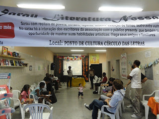 Nesta sexta-feira, a partir das 19h30, o Ponto de Cultura Círculo das Letras promove mais um edição do Sarau LiteraturaNossa. Quem quiser chegar será muito bem vindo.