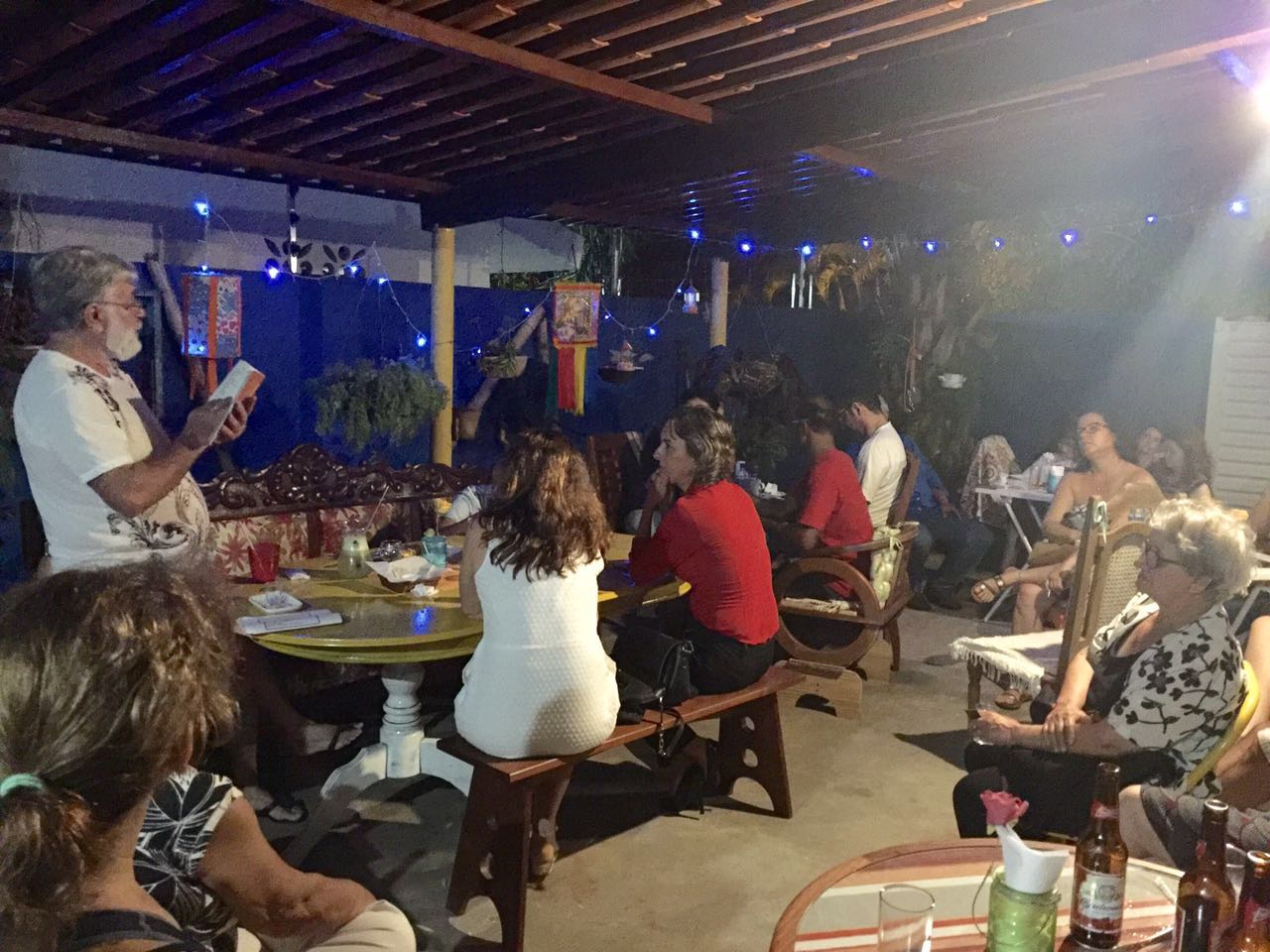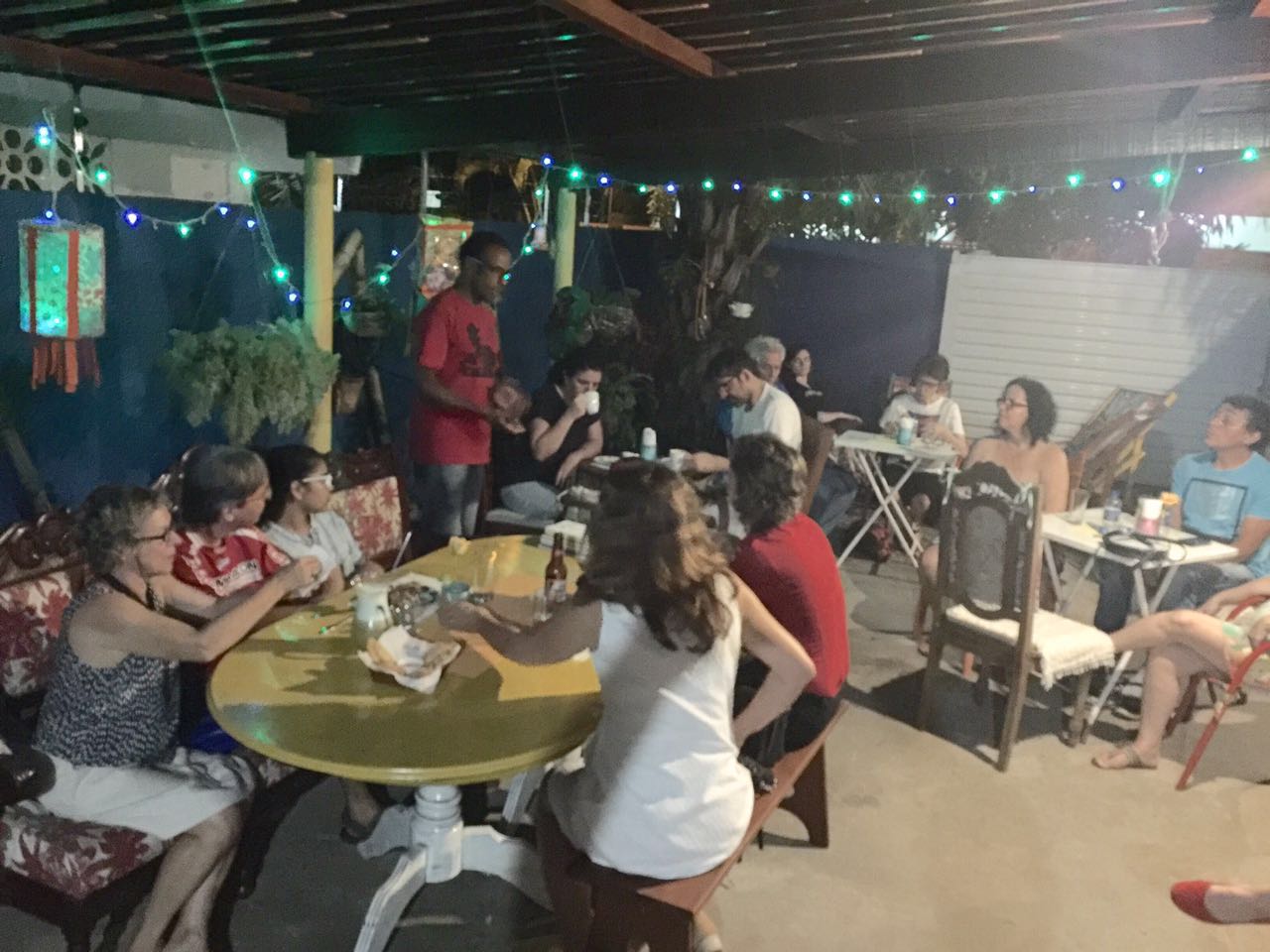 Não podia ter fechado de forma melhor, a minha estada aqui em Jampa. Essa atividade de ontem foi num espaço de amigos, artistas, intelectuais e sobretudo de militantes de movimentos sociais. A energia que rolou neste lugar foi algo que eu nunca senti antes, tamanha a sua intensidade. Confessei para alguns, ao final da noite, que eu não ia chegar em casa e descansar, porque ali eu já tinha recarregado as minhas energias, e posso dizer que estou pronto para a próxima viagem que será para Farias Brito – CE.
